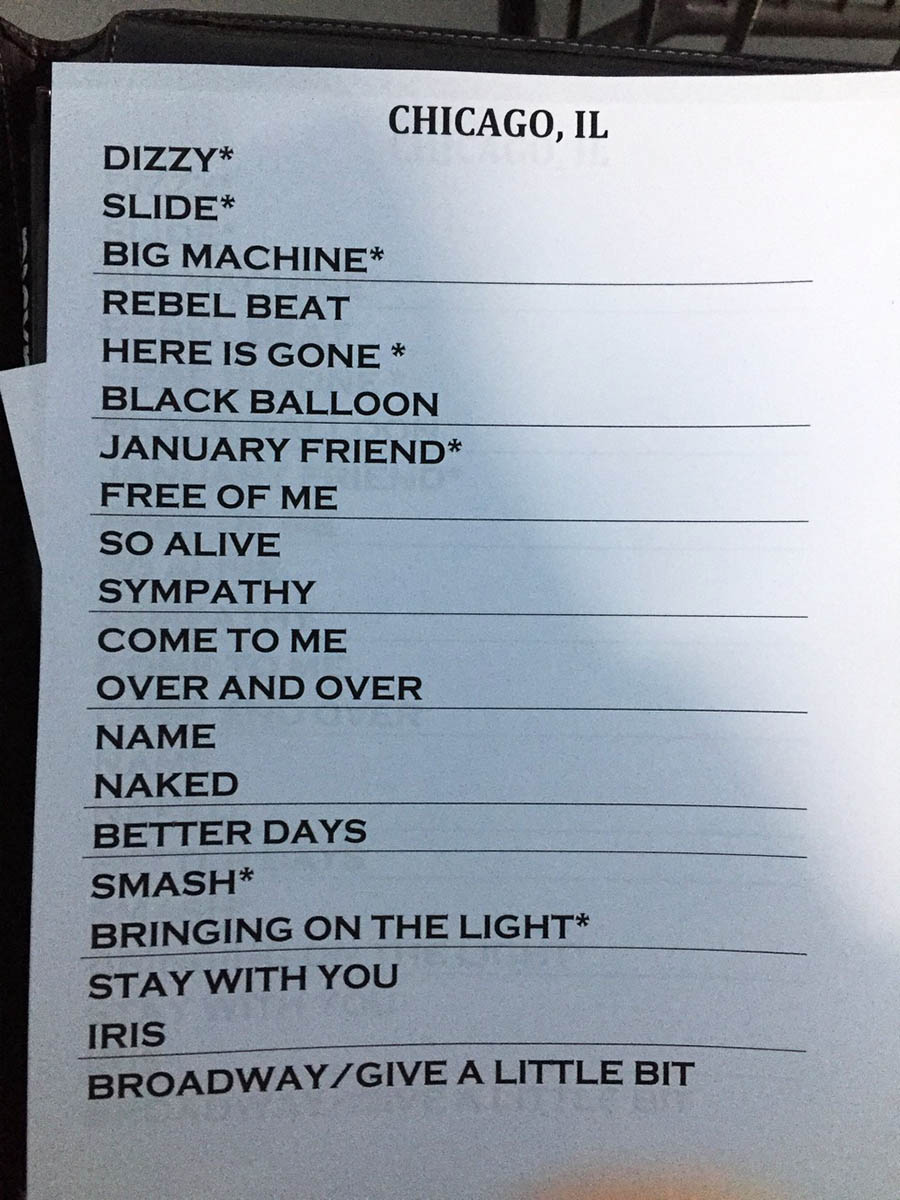 Have a look below at the Goo Goo Dolls corporate setlist from our recent show in Chicago…
